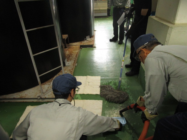 避難訓練・漏洩訓練・工場近隣の清掃活動を行いました 10月31日(金)避難訓練・漏洩訓練・工場近隣町道のゴミ拾いを実施いたしました。 消火訓練1 火元の消火訓練 消火訓練2 消火訓練、工場長訓示 漏洩訓練1 灯油漏洩訓練 漏洩訓練2 薬品漏洩訓練 清掃活動1 近隣町道の清掃活動 清掃活動2 近隣町道から回収されたゴミ